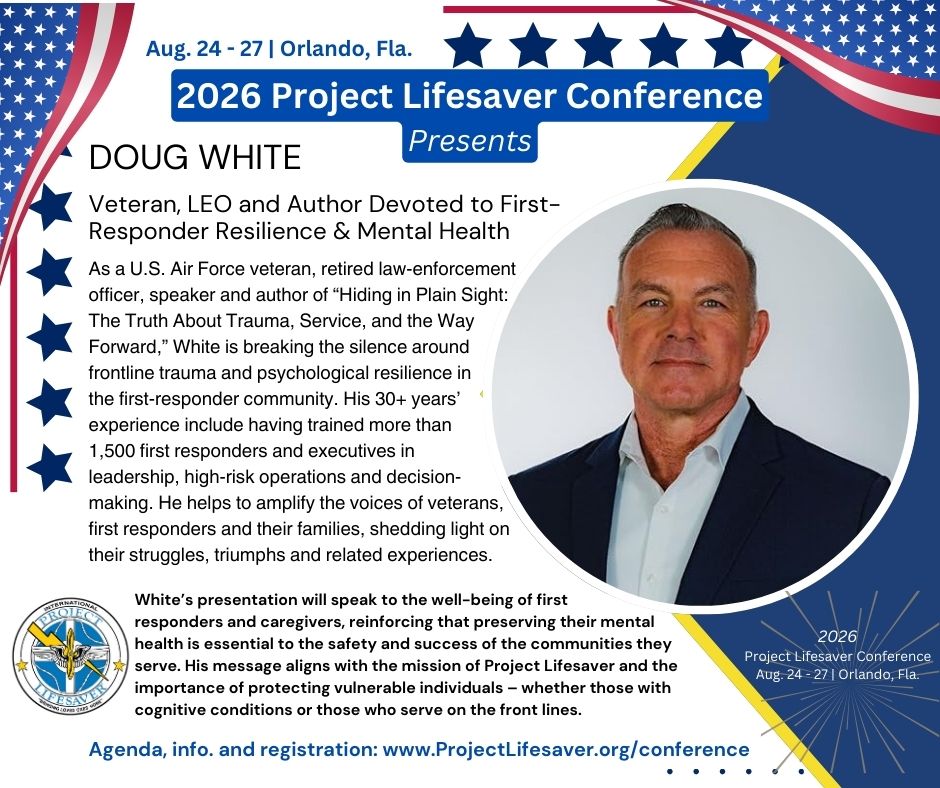 *Please note that becoming a trained, certified and equipped Project Lifesaver member agency is in itself a separate event. However, for members’ convenience, aspects of the required training are offered at the conference. For more about becoming a member agency in your community, please visit our Become a Member page.
